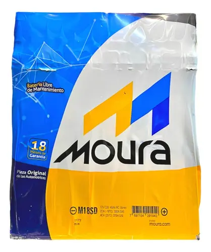 Las baterías Moura, de origen brasileño y con más de 60 años de trayectoria, son reconocidas por su alta tecnología, mayor vida útil (hasta un 50% más que las convencionales) y diseño sellado libre de mantenimiento. Son utilizadas como equipo original por las principales automotrices, ofreciendo excelente resistencia a vibraciones y climas exigentes.